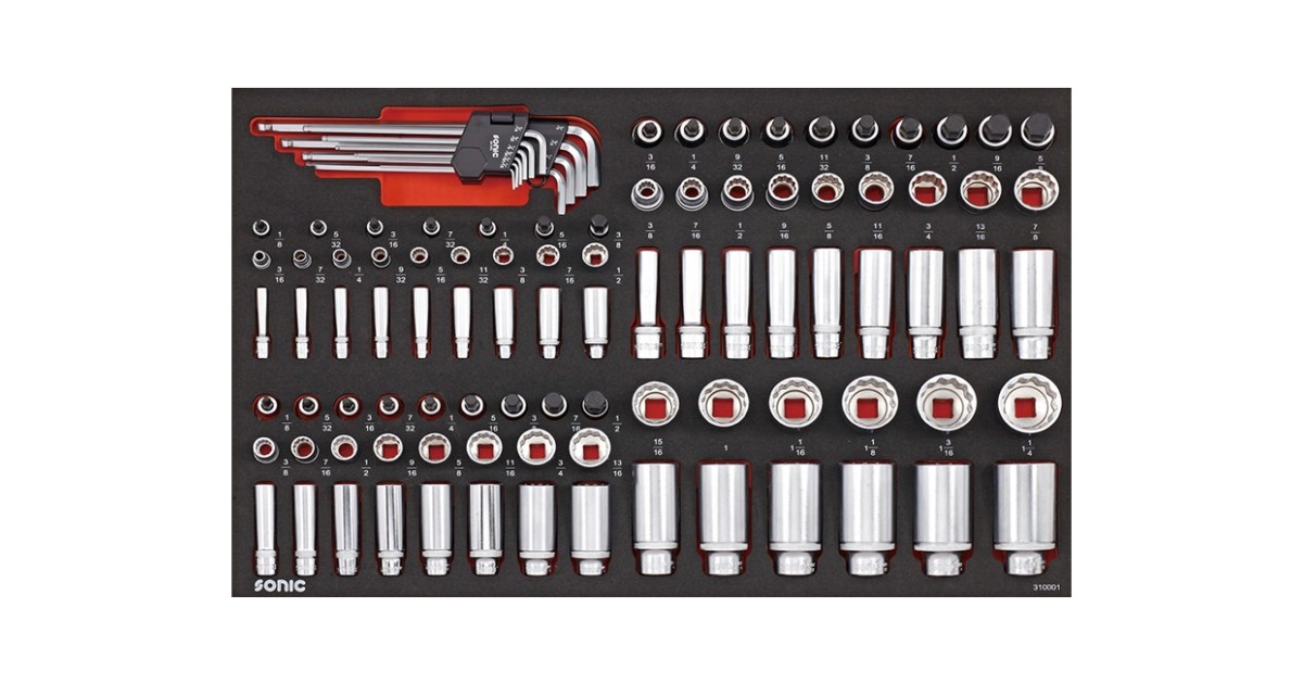 100-Os. Eva-Paneelis 12-Tähik Padrunid 1/4".+3/8"+1/2". Tollmõõt (Sae) Sfs Sonic