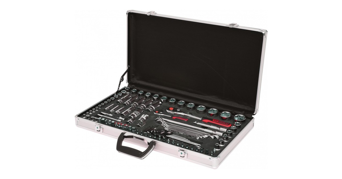 CHROMEplus pinnatöötlus. Tööriistad asuvad pehmes foam paneelis. Alumiiniumkohver.Komplekt sisaldab:pikad kuulotsaga L-kuuskantvõtmed 1.5-2-2.5-3-4-5-6-8-10 mm1/4" kruvitskäepide 150 mm1/4" pikendused 50-100 mm1/4" lühike padrun 4-4.5-5-5.5-6-7-8-9-10-11-12-13-14 mm1/4" pikk padrun 8-10-13 mm1/4" 12...