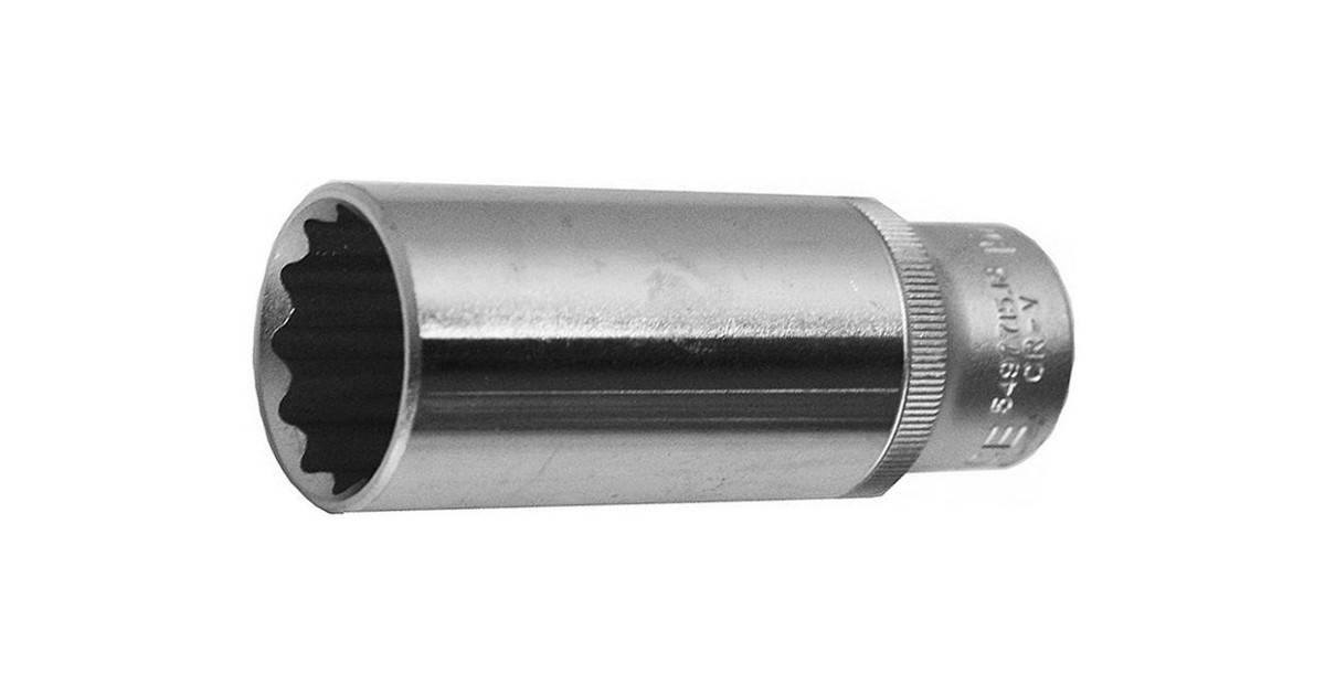 Tollmõõdus pikk 12-kant profiiliga padrun. CrV eriteras. Kroomitud pinnatöötlus.
