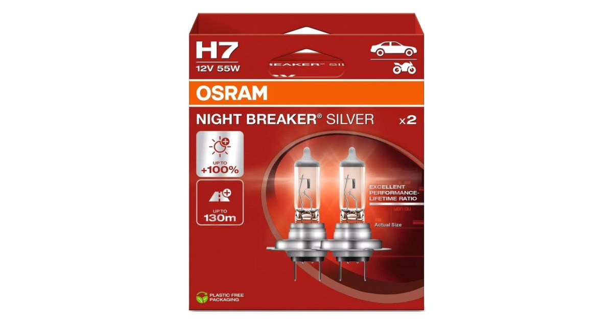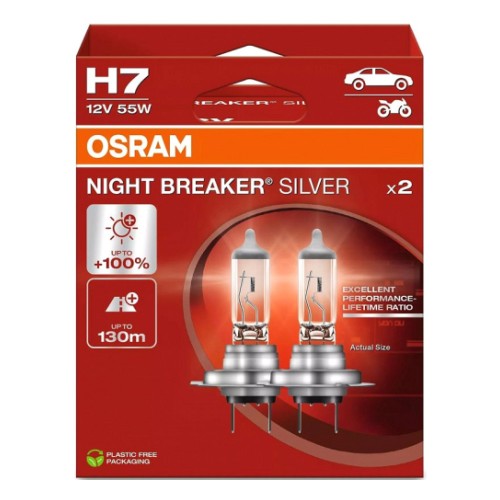 12V H7 Pirn 55W Px26D Night Breaker Silver +100% 2Tk Osram