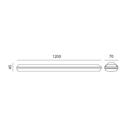 - Pikkus 1200 mm. kõrgus 70 mm. paksus 45 mm
