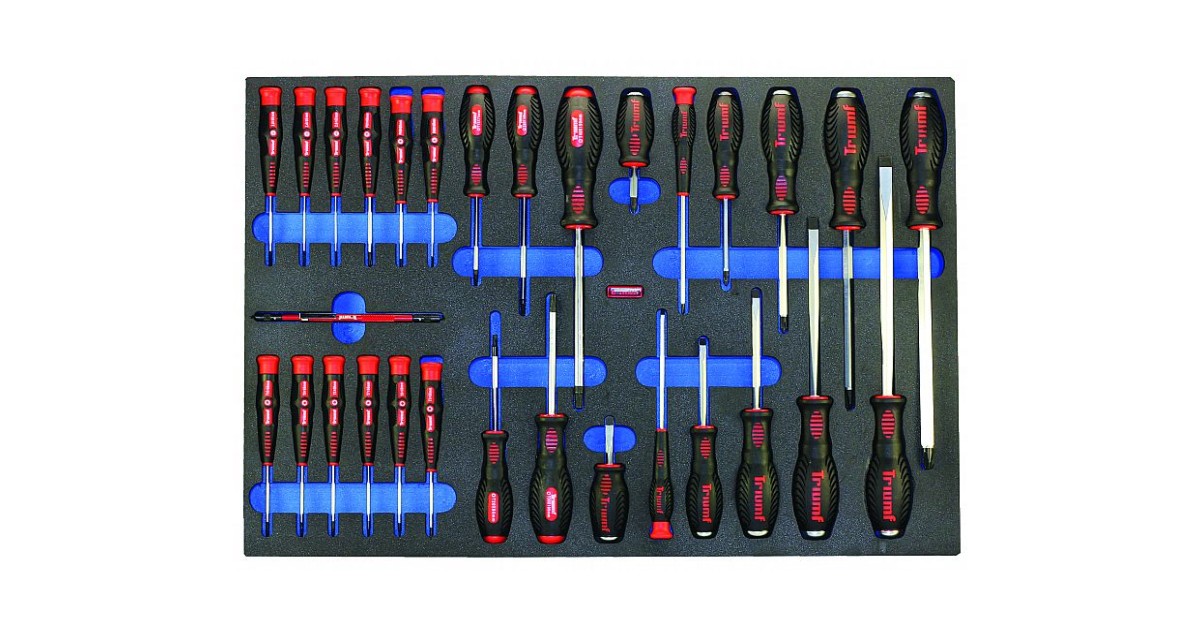 Kõik enamvajaminevad kruvitsad. Pehme “foam” alus. mille sisselõike osa on teist värvi pesa paremaks visualiseerimiseks. Õli- ja keemiakindel. pestav. Sobib sahtlitesse 585x410 mm. Mooduli mõõdud 585x405 mm.