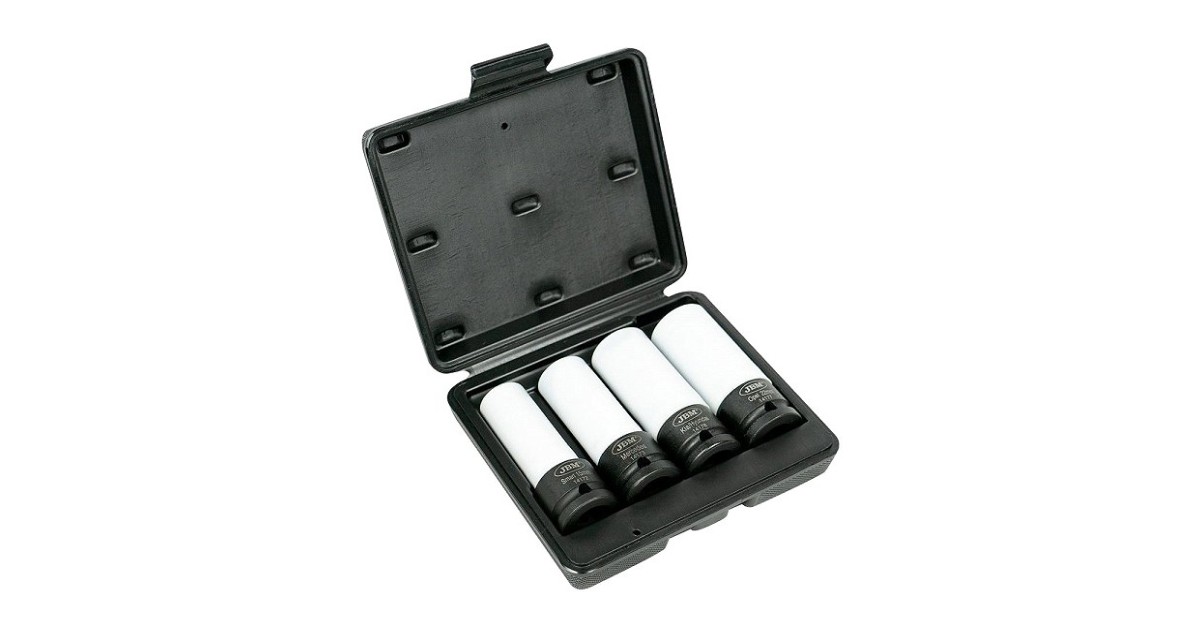 Vajalik komplekt kõikidele autoremondi ja rehvitöödega tegelevatele ettevõtetele. Komplektis mõõdud. mida siiski leidub Eesti teedel liikuvate autode seas üllatavalt palju. Padrunid on kaetud plasthülsiga. kaitsmaks valuvelje puldi/mutri ava veljekahjustuste eest. Komplektis padrunid: 15 mm Smart. 22 mm Opel. 17 mm MB. 21 mm Hyundai/KIA. Padrunid on valmistatud kroommolübdeen eriterasest. 85 mm pikkused. Plastkarbis.
