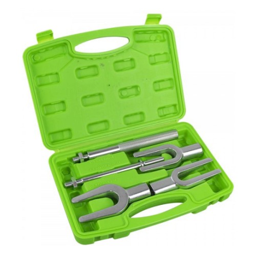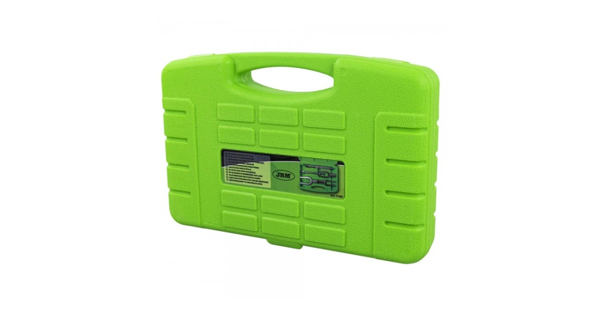 Kuulliigendi löökkahvlite avamise komplekt. Sisaldab 3 kahvlit ja nende külge keeratavat löökpidet vasaraga löömiseks ja pneumomeisli jaoks. Detailid on valmistatud kroomvanaadium karastatud terasest ja galvaaniliselt kaetud. kaitsmaks korrosiooni vastu. Plastkohvris.