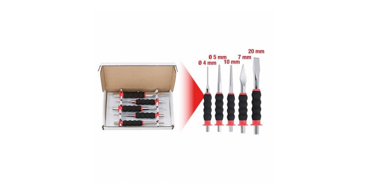 8-kant profiil. Korduvteritatavad. Pidemega. Poleeritud pinnatöötlus. Kroom molübdeen eriterasest.Komplekt sisaldab:Torn 4 mmKoonustorn 5 mmLapikmeisel 20 mmKärn 10 mmTeravotsmeisel 7 mm