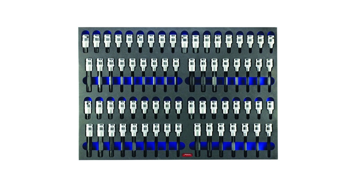 Kõik enamvajaminevad otsikud 1/2”. Pehme “foam” alus. mille sisselõike osa on teist värvi pesa paremaks visualiseerimiseks. Õli- ja keemiakindel. pestav. Mooduli mõõt 585x405 mm.
