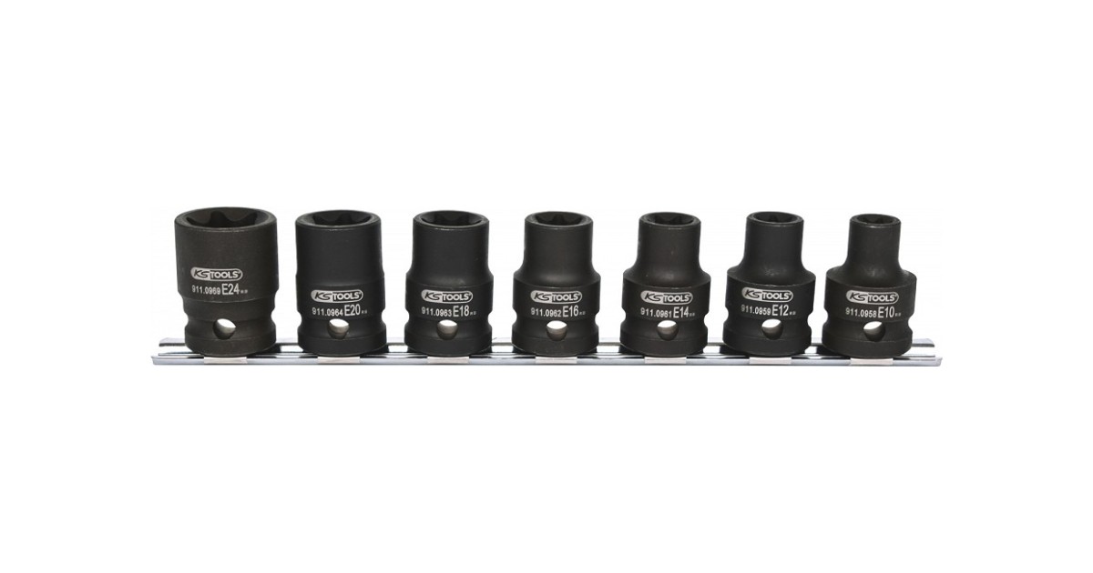 7-Os. 1/2" Torx Löökpadrunite Kompl. E10-E24. Siinil Ks Tools