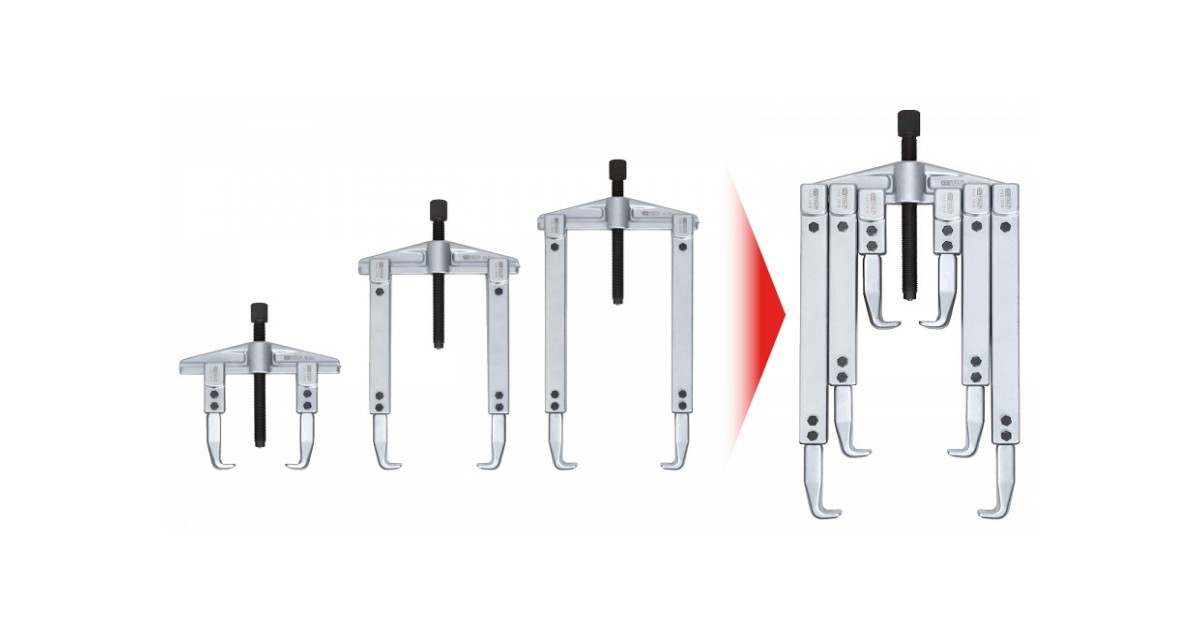 Universaaltõmmits. Komplektis kolm eri pikkusega haara. Sise- ja välishaardega. M14x1.5X150 mm kuulotsaga jõukruvi. Võimalik kasutada hüdraulilist jõukruvi. Maksimaalne haardeulatus 120 mm. Maksimaalne haara sügavus 260 mm.