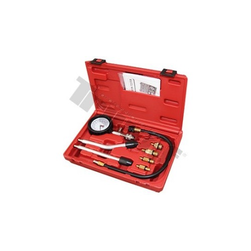 Suurepärane komplekt bensiinimootorite kompressiooni mõõtmiseks. Sobib 1-. 2-. 3-. 4-. 5-. 6- ja 8-silindrilistele mootoritele. Saab mõõta kompressiooni silindrites. millele on ligipääs raskendatud või läbi klapikambri/plokikaane. Voolikuga ja surutav versioon. 3-20 bar. Keermetele M10x1-M12x1.25-M14x1.25-M18x1.5. Plastkohvris.