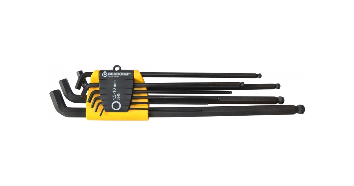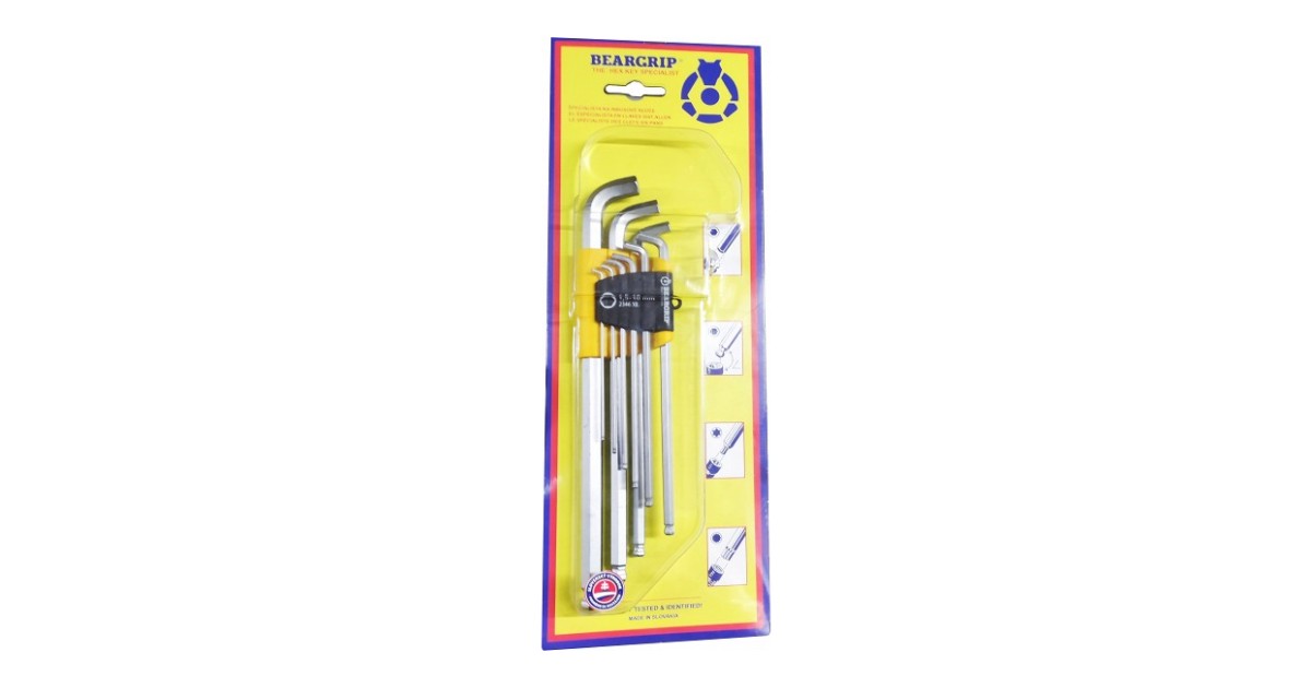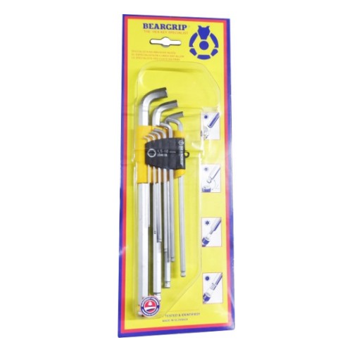 Spetsiaalsed. pikad L-kuuskant võtmed. Lühem osa on painutatud 110° kraadi alla. mis hõlbustab kasutust. Võtme pikemas otsas on kuuskant-kuulpea. Valmistatud spetsiaalsest kroom-vanaadium terasest. tugevus 54-56 HRC. Fosfaaditud pinnatöötlus. Plasthoidikus.