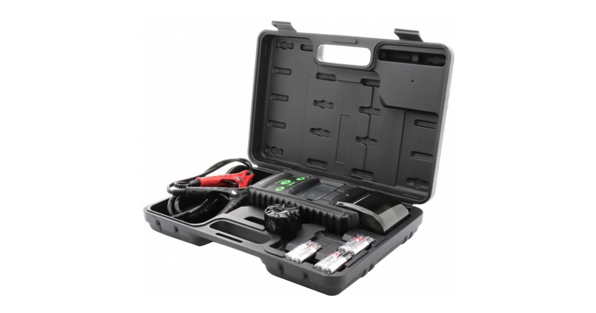 Universaalne digitaalne akutester 6 V-12 V-24 V akudele. Termopaber printeriga. millele prinditakse testi tulemus. Testriga saab testida täis laetud (!) akusid. mis on traditsioonilised pliiakud. AGM-. GEL-. VRLA-. SLI- tehnoloogia jne. Laadijaga saab kontrollida ka sõiduki laadimissüsteemi 12 V ja 24 V. 1.8 m pikkune käppadega testkaabel. Digitaalne displei. töötab patareidega 6x1.5AA. Plastkohvris.