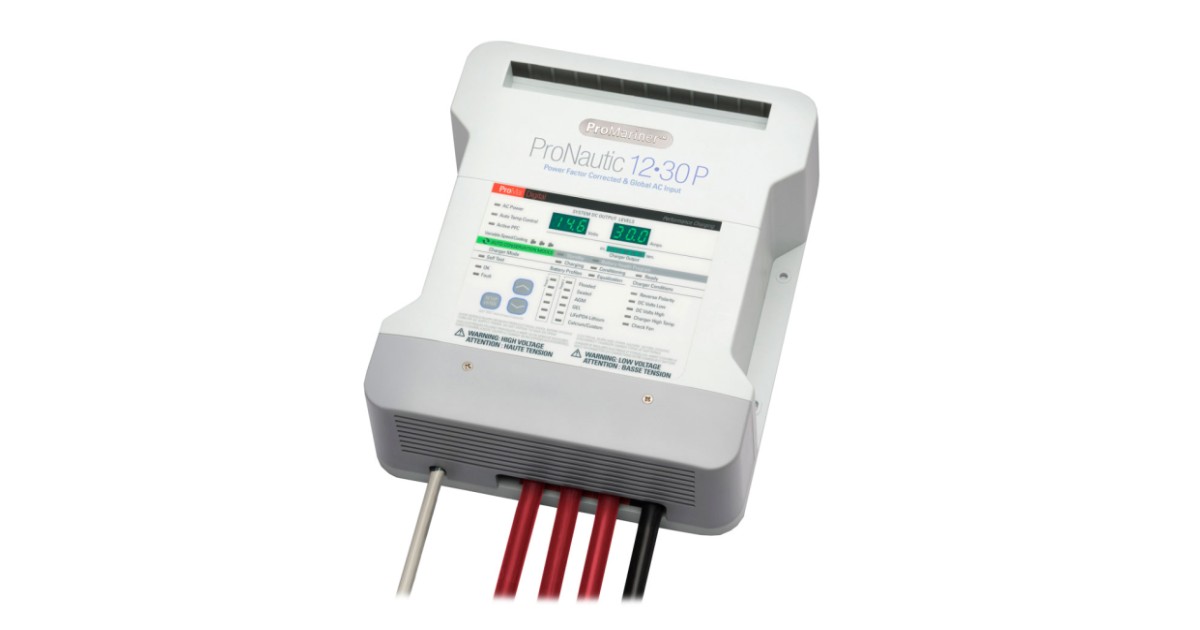 ProNautic digital performance battery charger, with total output 3 x 30 A. Service and fault mode indicators. Automatic temperature compensation and built-in safety. LED display. Conservation energy saver mode. For 12 V battery. Weight: 2,3 kg. Dimensions: 26 x 22 x 9 cm.More information from HERE.