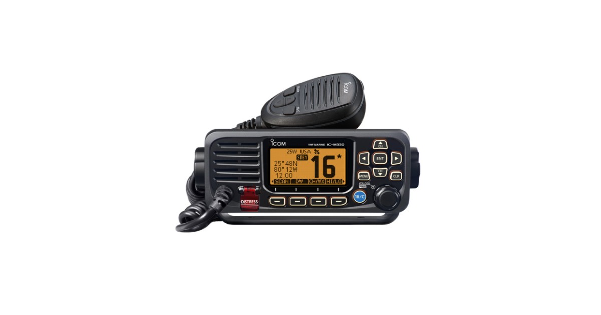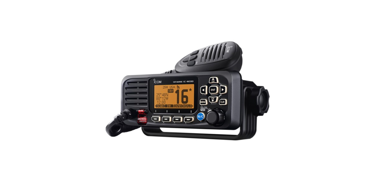 The Icom IC-M330GE is one of the smallest fixed VHF / DSC radios available and features a front display so small that it matches the size of modern smartphones. This is a small, compact unit that features a built in GPS receiver and external GPS antenna.