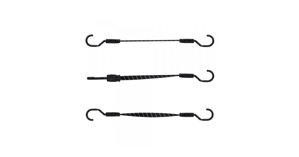 - Durable flat rubber with steel hooks coated with plastic material - Hook placed on both ends of rope - Flat rubber shape prevents from moving of baggage and light objects - 3 times stronger than standard elastic rubber - Used at home, camping, transport and motorisation - Set includes: 2 pcs x 80...