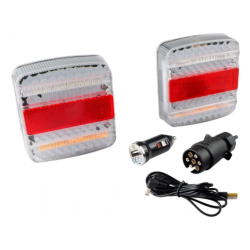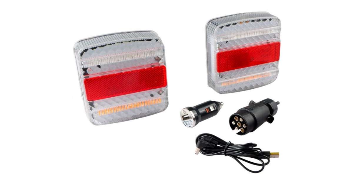 Ainulaadne toode turul - juhtmevabad haagise LED-tagatuled. Tulede sees aku. mis laetav auto sig. süütajast. Tuled kinnituvad tugevate magnetitega. Laadimise aeg 2-3 h. tööaeg 2-3 h. max 10 h. Tööraadius 20 m. 7-pin pistik WiFi mooduliga. Niiskuksindlus IP65. Töötemperatuur -10ºC kuni 50ºC. Plastkarbis.