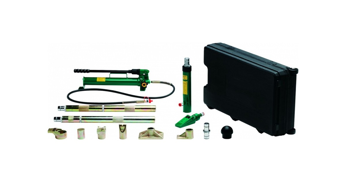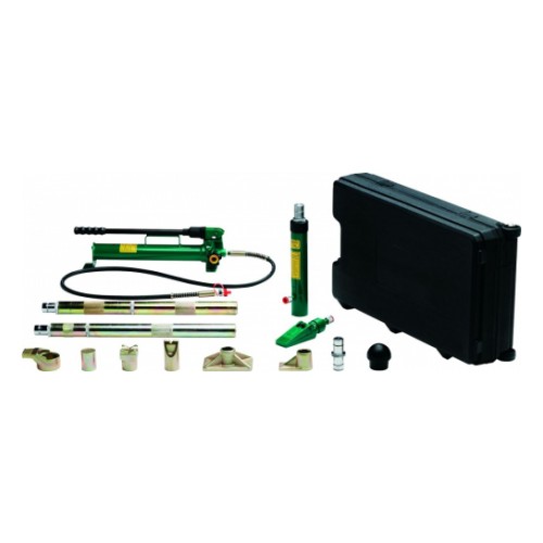 Klassikaline keretööde plekiõgvenduse komplekt. Komplekt sisaldab 150 mm käiguga hüdrosilindrit. V-surumispead. erinevaid pulk- ja taldadaptereid. Tööriistad asuvad ratastega plastkohvris. Garantii 3 aastat. Valmistatud Taanis.