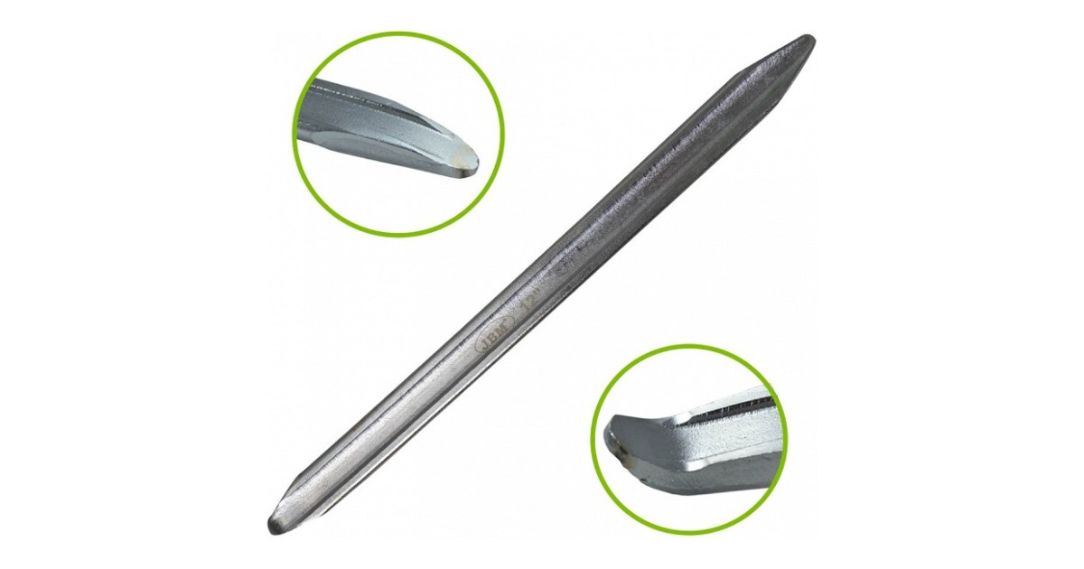 Galvaanilise erikihiga klassikaline heebel. mis valmistatud spetsiaalsest peenstruktuuriga tööriistaterasest. Tugevdussoontega. Lihvitud ja painutatud otstega. parema haarde tagamiseks rehvitöödel.