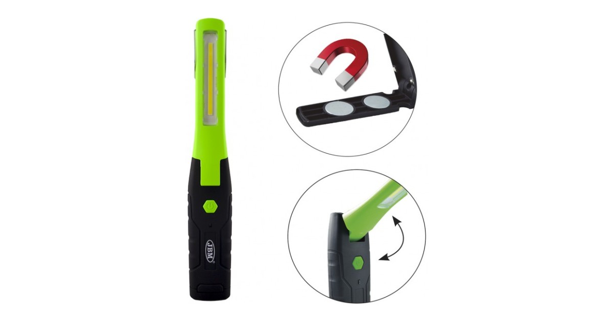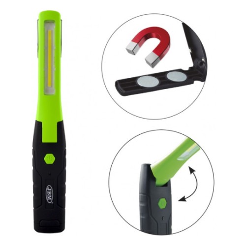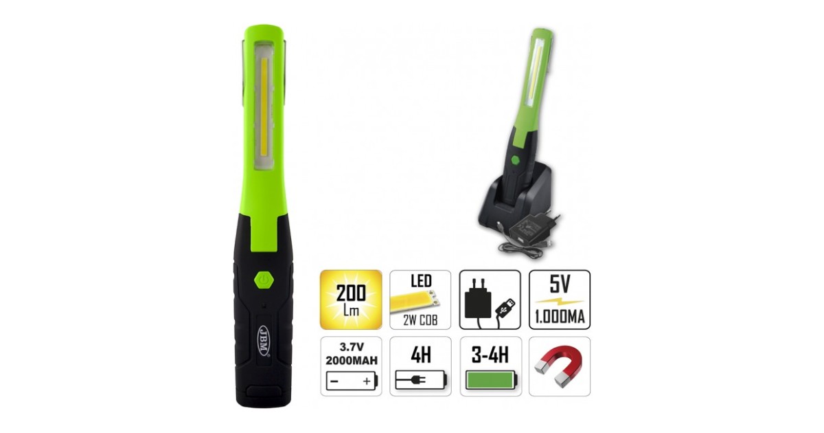 Automehhaanikute seas ülipopulaarne kandelamp tänu laadimisalusele. Tugev ja vastupidav korpus. COB valgusdioodidega (nn triipdiood). Painduv pidemeosa. Magnetriputus käpp. 200 lm valgusjõud. 1000mAh aku. Laadimise aeg 3-4 h. tööaeg 4 h. Külje LED 2 W. otsa LED 0.5 W. Kaasas laadija. Laius 30 mm ja kõrgus 160 mm.
