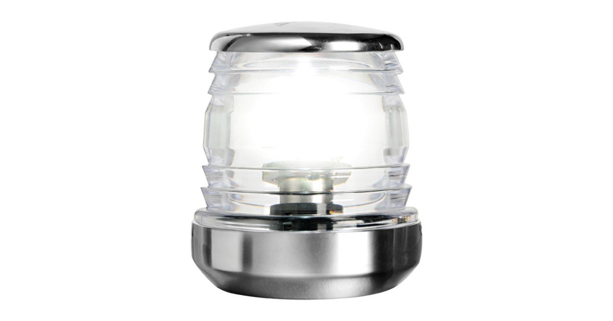 Led navigation light Classic 360°. Made of polycarbonate and AISI316 stainless steel. Suitable for boats up to 20 meters long. Power supply: 12/24 V, Power: 1.7 W, Mast length: 74 cm, Diameter: 64 mm.