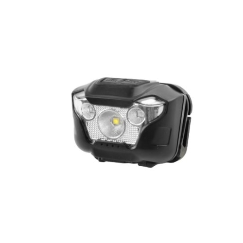 Nii laetava akuga kui 3xAAA patareidega töötav LED-pealamp kolme eesmise valgusallikaga - punane, roheline ja valge.