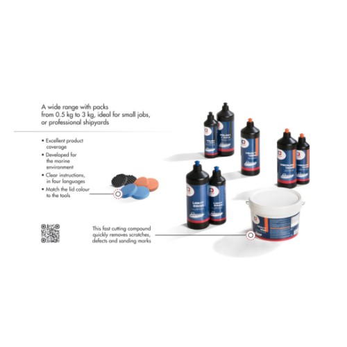 Medium-power polishing abrasive paste to be used after sanding with P1500 grain. It removes streaks and oxidation for an extremely bright and smooth surface. Suitable for soft and coloured gelcoat and painted surfaces.