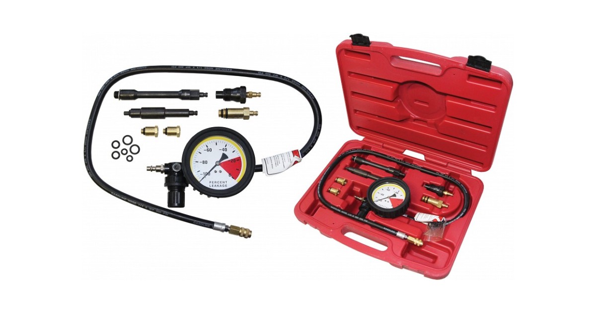 Mootori silindri tiheduse kontrollimise komplekt bensiini- ja diiselmootoritele. Saab kontrollida klappide ja kolvirõngaste pidavust. Lekkivat plokikaane tihendit jne. Adapterid M10x1.0 ja M12x1.25 mootorratta mootoritele. M14x1.25 ja M18x1.5 autode bensiinimootoritele. M24x2 ja M12x1.25 diiselmootoritele.