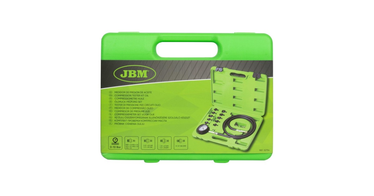 Õlisurve mõõtmise komplekt 0-10 bar rõhule. Komplektis mõõtekell koos vooliku ja kiirliides otsikuga ning meetermõõdus ja tollmõõdus adapterid. Tugevas plastkohvris.