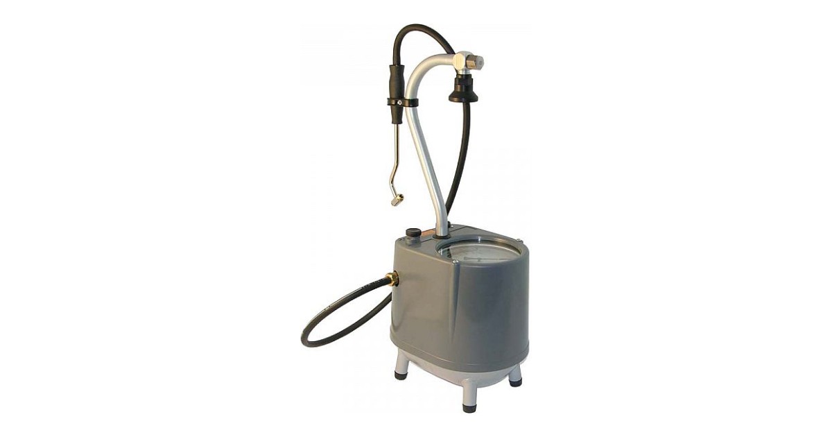 Suure. kergelt loetava manomeetriga. 1.5 m pikkuse pumpamisotsikuga. mille otsas 2-poolne täiteadapter lukustusega. Paagi maht 6 l. Kasutatakse avariiabi sõidukitel. töökodades. automüügisalongides jne. Pulbervärvitud korpus. Max sisendrõhk15 bar. kalibreering 0-10 bar. Kaal 8 kg.