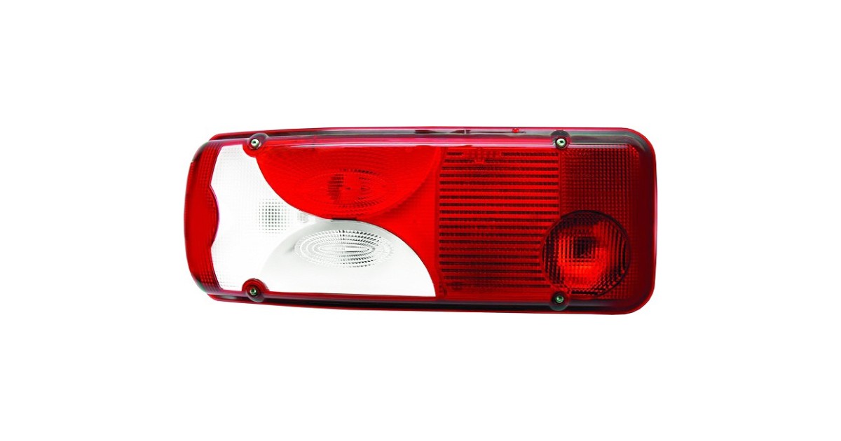 Scania veokite tagatuli. valget värvi segmendiga (suunatuli. tagurdustuli). Tule küljel 7-pin pistik AMP 1.5. E-markeeritud. ADR. CCC. Laius 400 mm. kõrgus 160 mm. paksus 88.5 mm. kinnituspoltide vahe 152 mm. Valmistatud Prantsusmaal.Pirnid 3 x R5W. 3 x P21W ja 1 x PY21W. Sobib AMP 1.5 7-pin pistik 999122850.