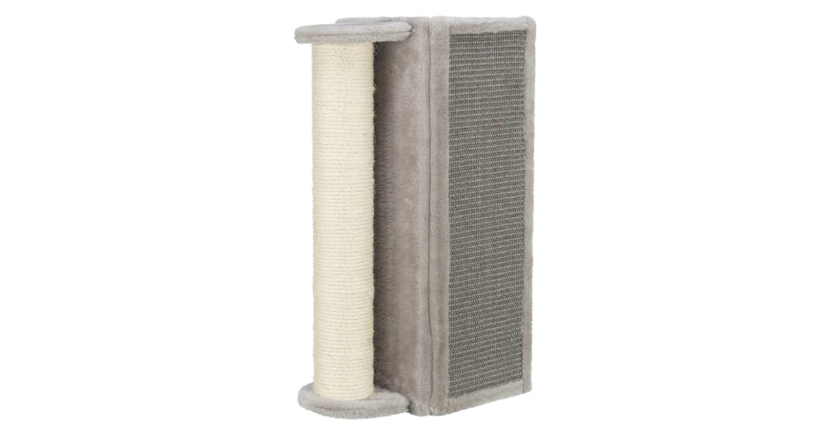Scratching board for corners with post, 19 × 58 × 19 cm, grey