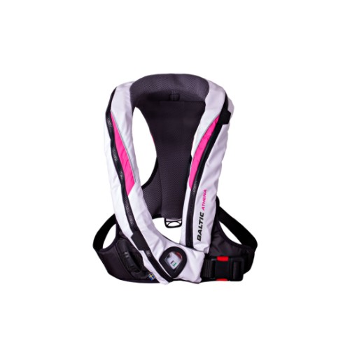 Athena 165 is the first ever inflatable lifejacket developed with focus a on women. To get a better fit and a slimmer vest, the valve is placed under the bust, in combination with good adjustment options, it provides a neat and flexible model regardless of body shape. The vest is closed with acid-pr...