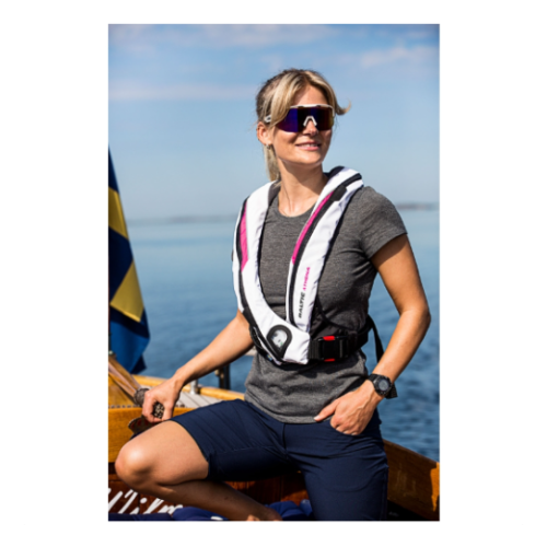 Athena 165 is the first ever inflatable lifejacket developed with focus a on women. To get a better fit and a slimmer vest, the valve is placed under the bust, in combination with good adjustment options, it provides a neat and flexible model regardless of body shape. The vest is closed with acid-proof interlock fittings and a padded Velcro that provides a soft protective layer between the body / clothes and the fitting. Inspection windows that through valves green indicators show that the life jacket is charged and ready for use. Detachable crotch strap and whistle. 165N carrying capacity and is classified as a life jacket. Especially suitable for female anatomy!