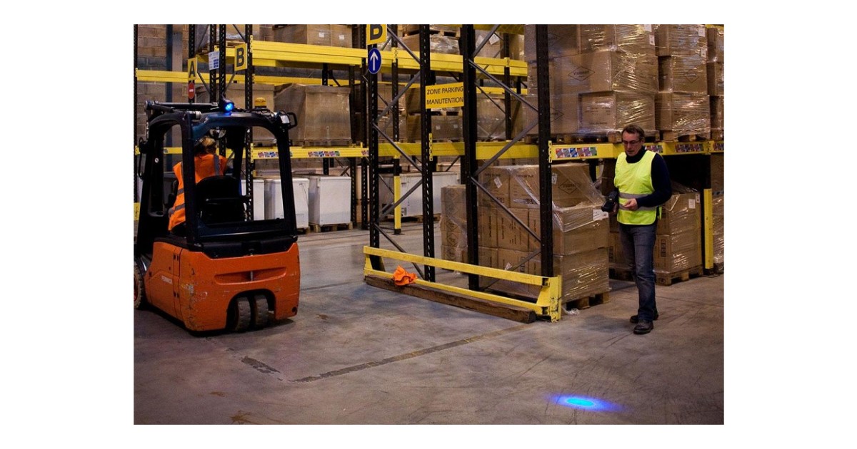 Sinine kahveltõstuki LED hoiatustuli. mis joonistab pinnale sinise hoiatusvihu. Kasutatakse nt ladudes tõstukite liikumistrajektooridel hoiatuseks jne. 12-100 V elektrisüsteemidele. Ühendamiseks on valgustil AMP2 pistikupesa. Maksimaalne võimsus 5 W. IP68. EMC. Valgustusosa 109x109 mm. Kinnitus M10. Sobib pistik 999153540.