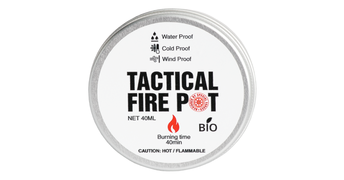 Tactical Fire Pot is an innovative product produced in Estonia and which is ideal for making small fire instead of flame. It is a 100%BIO product. The product is whether proof and reusable! Since the product does not contain water, it burns at high temperature. It contains ethanol and silicon oxides...