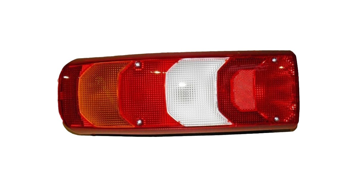 Mercedes-Benz Actros MP4 LED tagatuli. Ovaalse OE 3+4-pin pistikuga tule küljel. E-markeeritud. Laius 370 mm. kõrgus 130 mm. paksus ca 90 mm. kinnituspoltide vahe 140 mm. Pirnid 2 x R10W. 3 x P21W. Sobib Mercedes Benz OE pistik 999193130.
