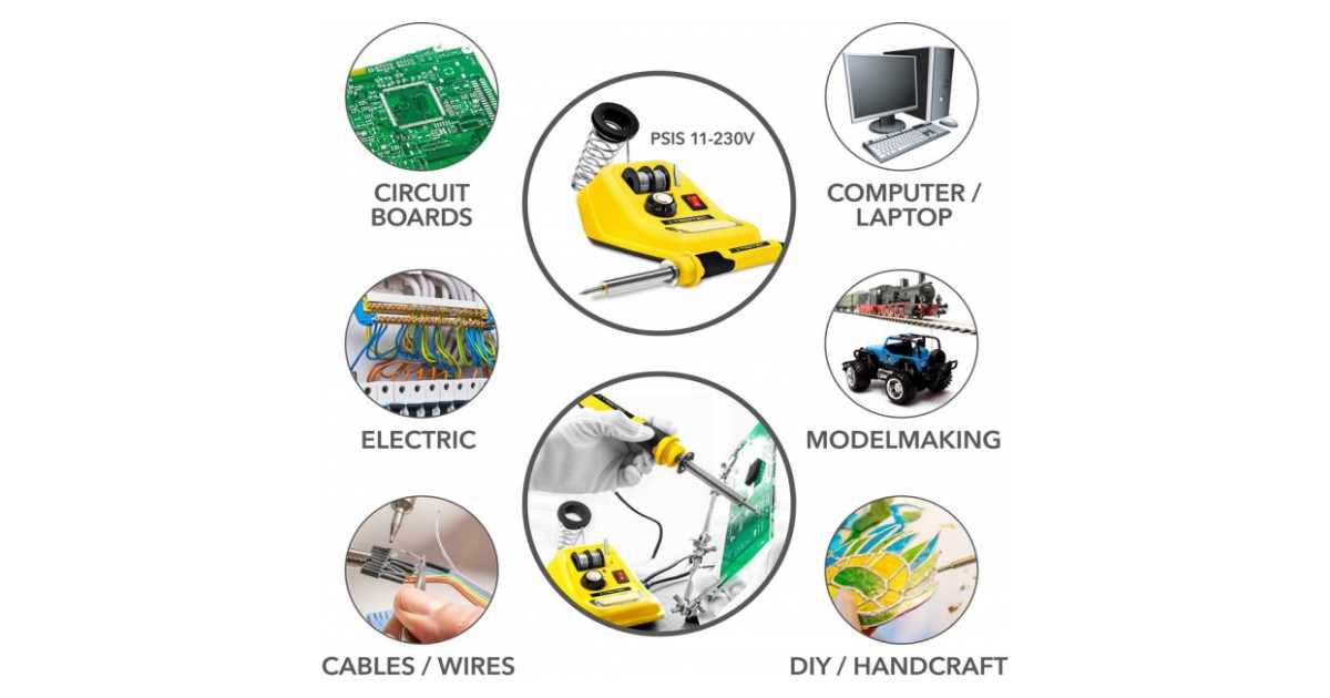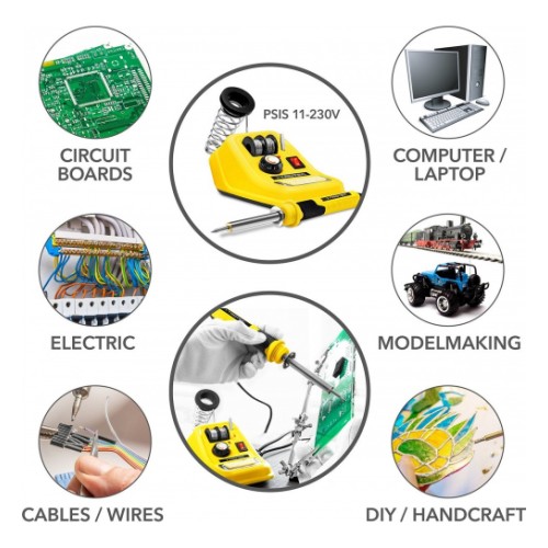 Saavutab väga kiiresti soovitud temperatuuri. 500°C 150 sekundiga. Jaama küljes on koht jootetinale ja roostevabast terasest hoidik jootekolvile. Komplektis on 2 jootetina rulli ja 2 erinevat otsa.