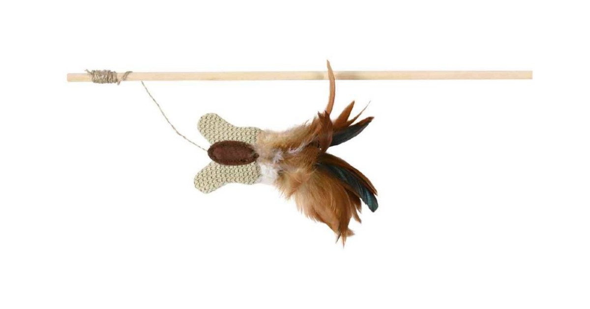 Toy for cats playing rod with butterfly and feathers, 45 cm