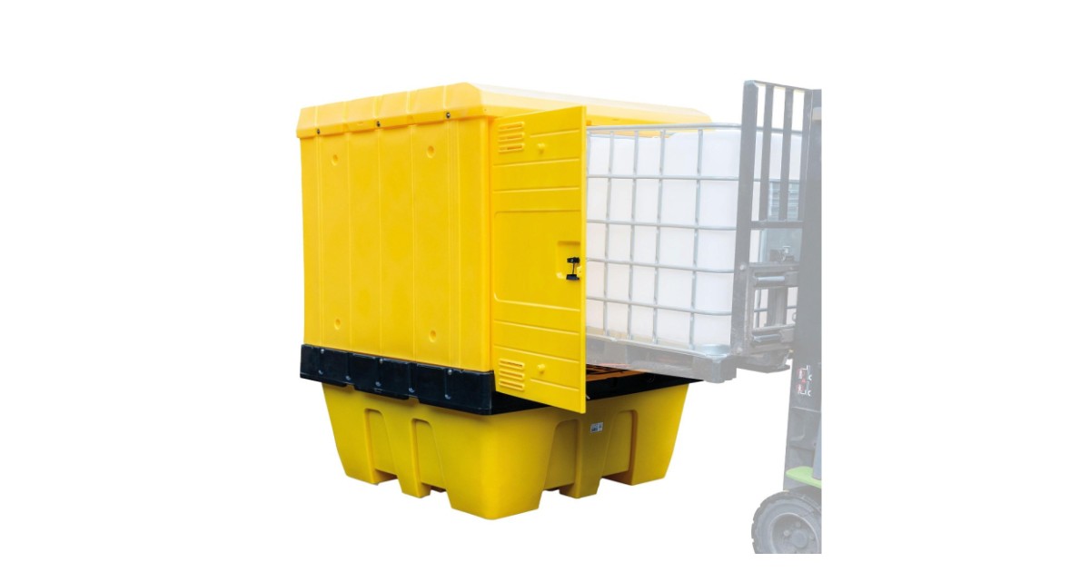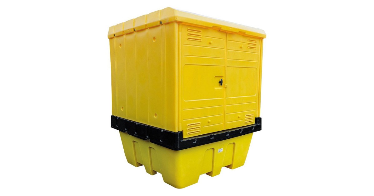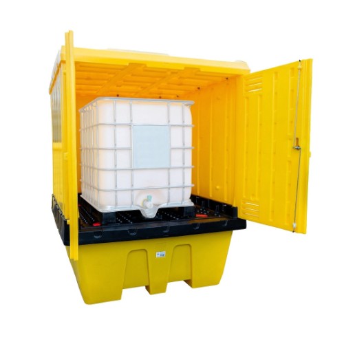 Tugev ja vastupidav vaadialus koos seinade. katuse ja ustega. Nõutakse õlide ja kemikaalide säilitamisel töökojas. tööstuses. ehitusobjektidel jne. Tänu katusele ja ustele saab jätta ka õue või ehitusobjektile ladustatuna. Sobib 1000L IBC mahutitele. saab kasutada ka 200L (4 tk) vaatide tarvis. Valmistatud spetsiaalsest PE-plastisegust. Ventilatsiooniavadega. Uksed saab soovi korral tabalukuga lukustada. UV- ja ilmastikukindel. Kahvelkäru või tõstukiga tõstmise valmidusega. Maksimaalne kandejõud 2500 kg. Mõõdud 1775x1770x2265 mm. Kaal 221 kg.