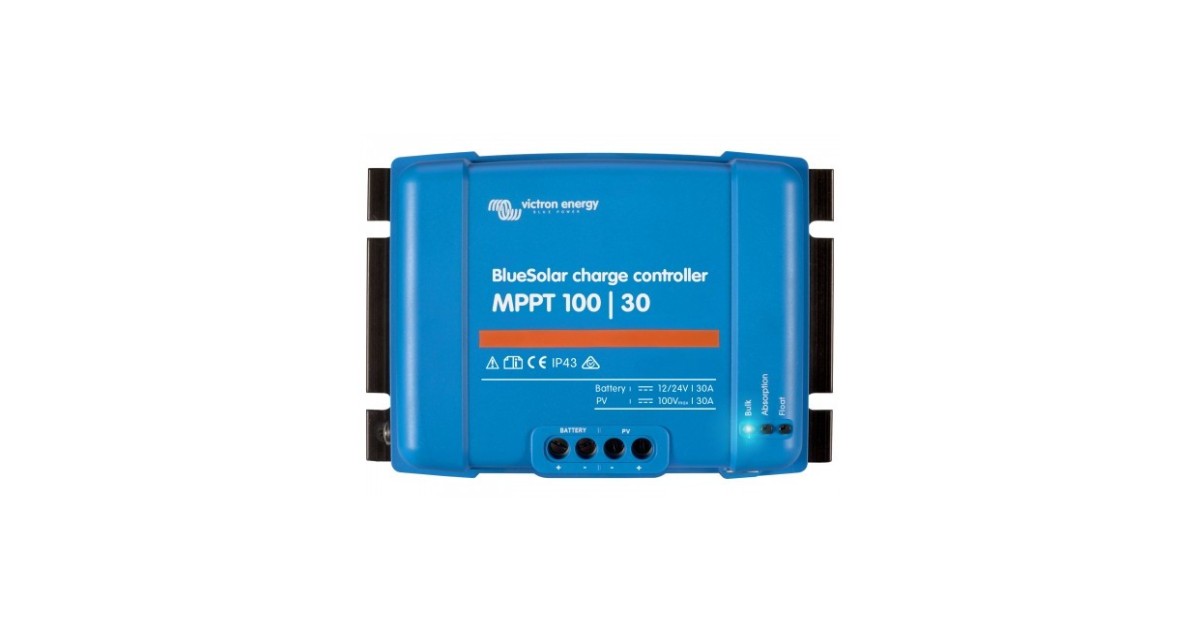 This Victron Blue Solar Charge Controller supports a PV input with a maximum open circuit voltage of 100 V and has a maximum output of 30 A. It works with and will automatically recognise 12 V and 24 V battery systems. By constantly monitoring the voltage and current output of your solar (PV) panels...