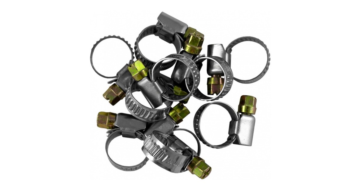 Valtsitud keermesosaga lõdvikuklambrid 10 tk. 8-16 mm mõõt on põhiline. mida kasutatakse õhuvoolikute fikseerimiseks liideste külge. Valmistatud keemia-. õli- ja roostekindlast eriterasest.
