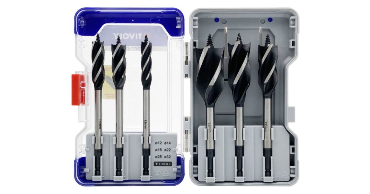 Wood drill bits with 4 cutting edges 12/14/16/22/25/32 mm, 1/4 Hex shank