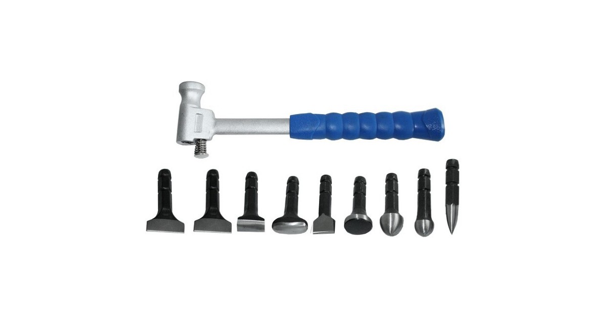 Professionaalseks kasutamiseks. Komplekt sisaldab terasvart kummist pidemeosaga. mille külge saab kinnitada erineva profiiliga vahetusotsikud.