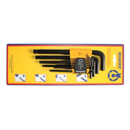 Pikad L-kuuskantvõtmed kuulpeaga. mis võimaldab keeramist ka nurga all. CrV eriteras. matt pinnatöötlus. Riputuspakendis.