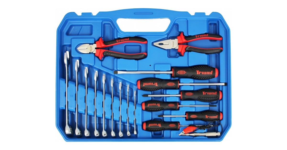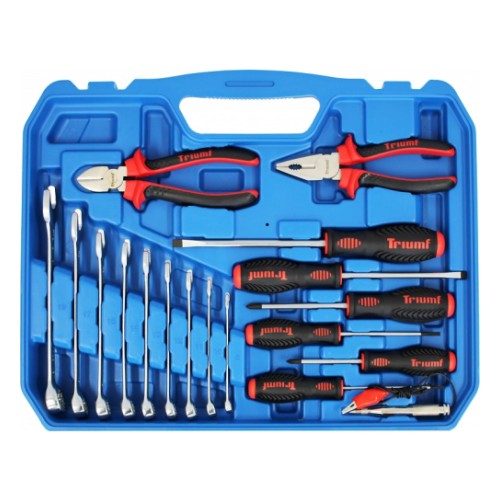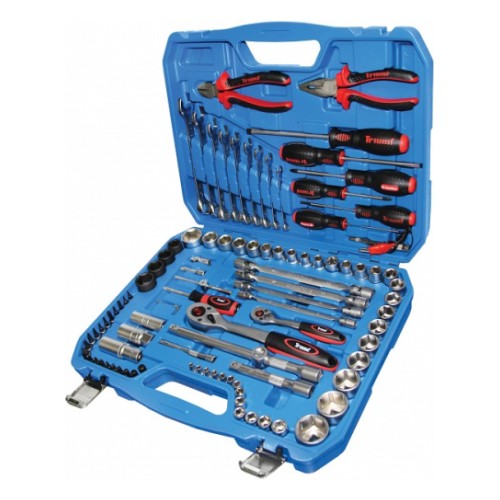 Töökodadele ja tehnilise hoolduse ekipaazidele loodud tööriistakomplekt. Kompaktne. sisaldab kõike vajalikku põhitööde teostamiseks. Komplektis silmus-lehtvõtmed. padrunid. kontpadrunid. näpitsad. kruvikeerajad jne.