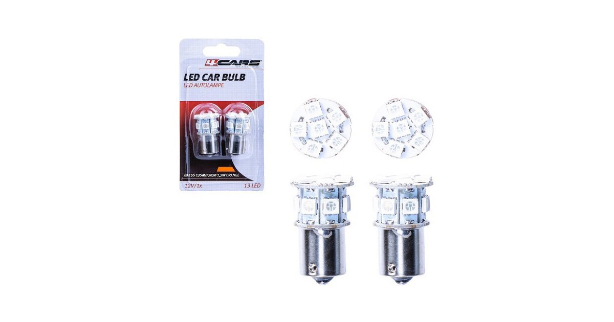 12V Ba15S Led Pirn 1.5W P21W Kollane Blister 2Tk 4Cars