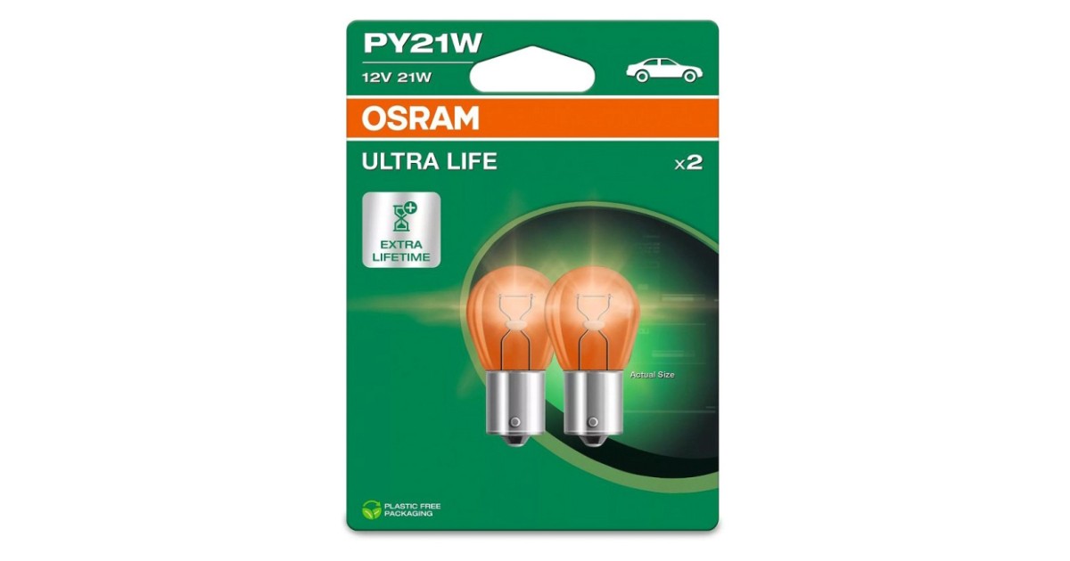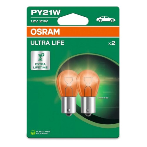 12V Bau15S Pirn 21W Py21W Kollane Ultra Life Blister 2Tk Osram