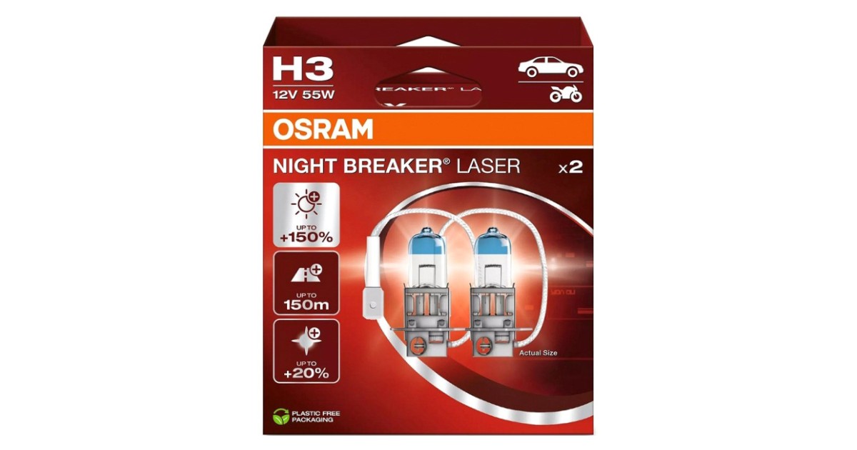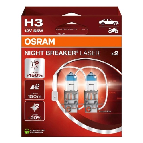12V H3 Pirn 55W Pk22S Night Breaker Laser +150% 2Tk Osram