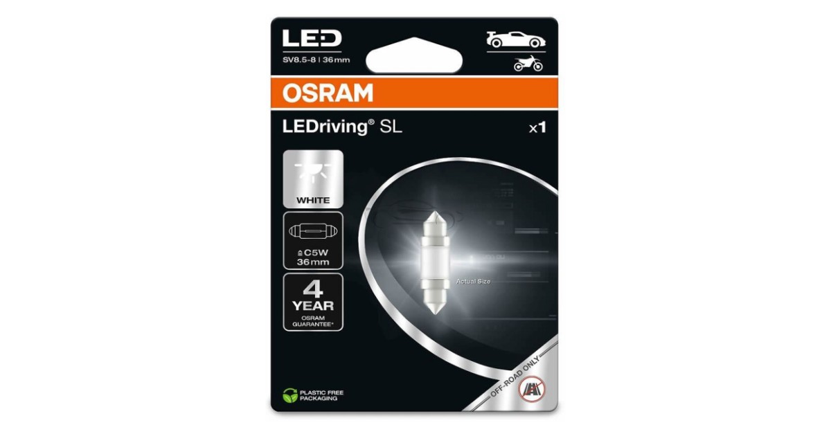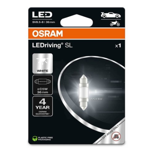 12V Sv8.5-8 Led Pirn 0.6W C5W 36Mm Valge 6000K Ledriving Sl Blister 1Tk Osram