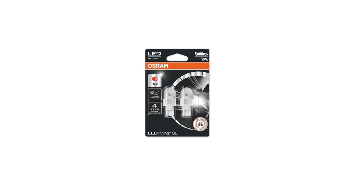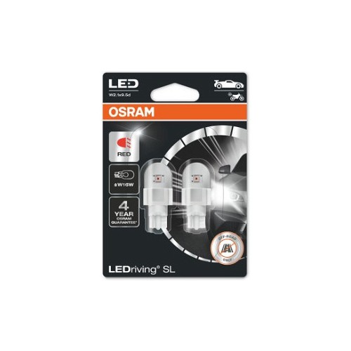 12V W2.1X9.5D Led Pirn 2W W16W Punane Ledriving Sl Blister 2Tk Osram