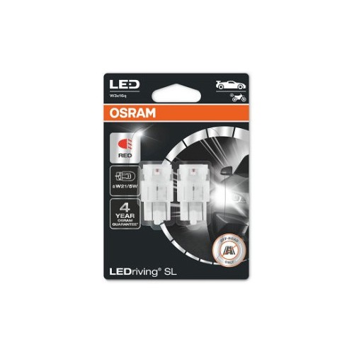 12V W3X16Qled Pirn 1.7W W21/5W Punane Ledriving Sl Blister 2Tk Osram